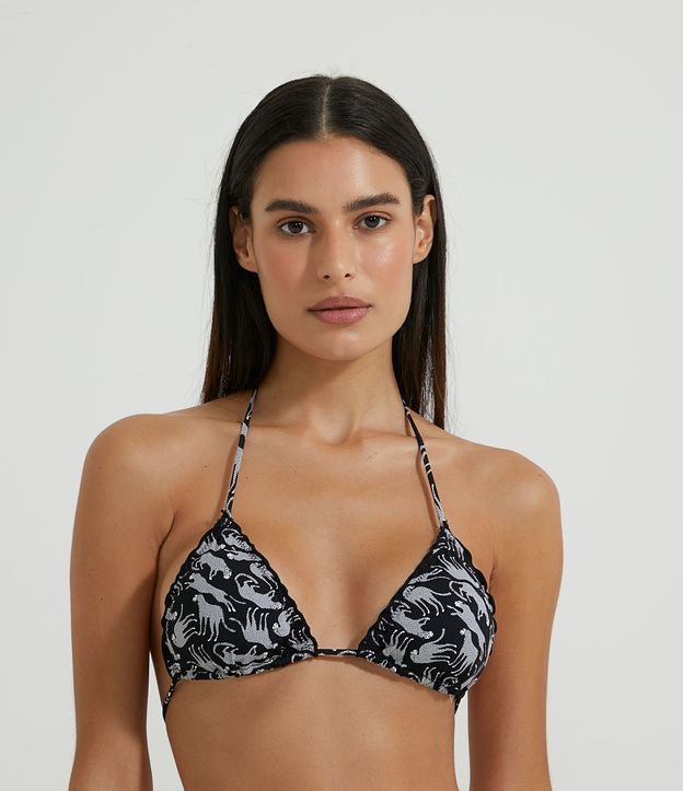 Biquíni Top Cortininha em Poliamida com Estampa de Mini Onças e Frufru