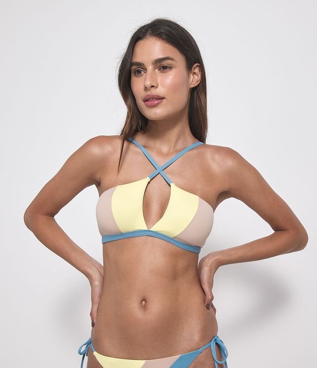 Biquíni Top Cropped Cruzado Color Blocking com Bojo Removível