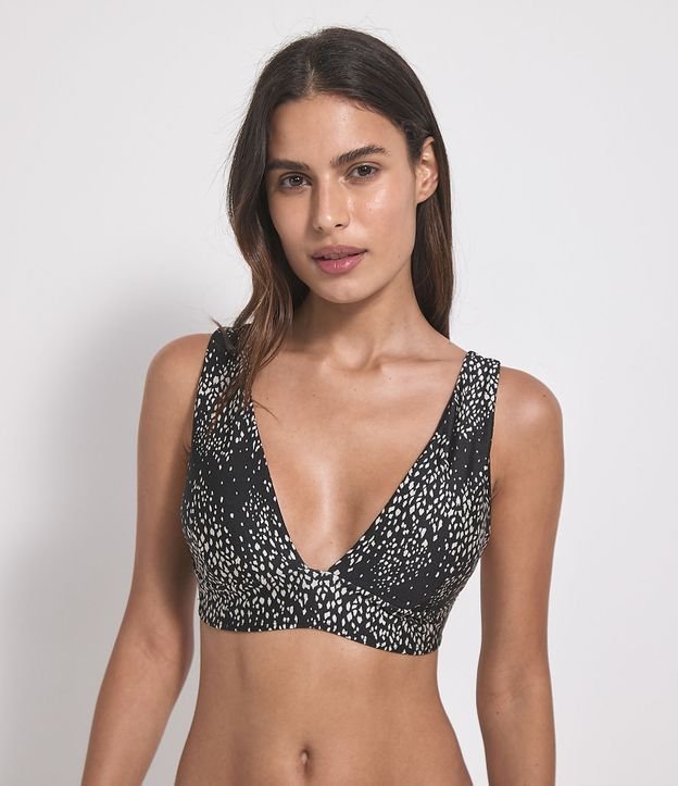 Biquíni Top Cropped Decote Profundo com Bojo Estampa Animal P&B