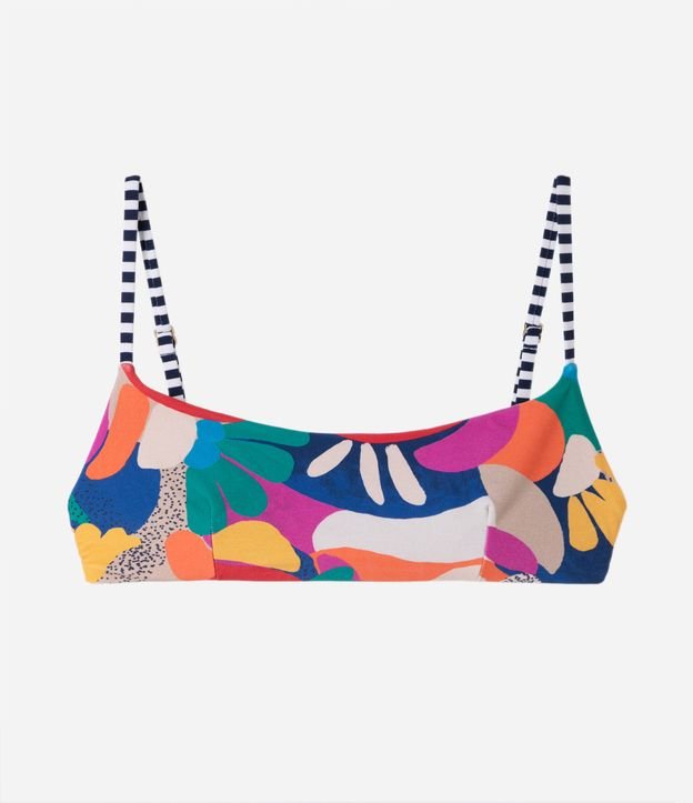 Biquíni Top de Alça Listrada em Microfibra com Estampa Colorida