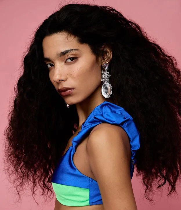 Biquini Top em Microfibra com Alça Bufante Azul/Verde