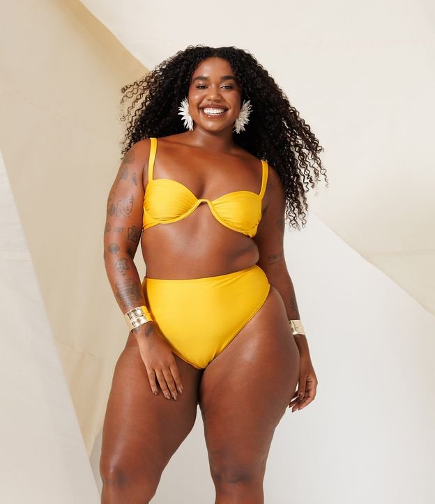 Biquíni Top em Poliamida com Franzido no Busto Curve & Plus Size Amarelo
