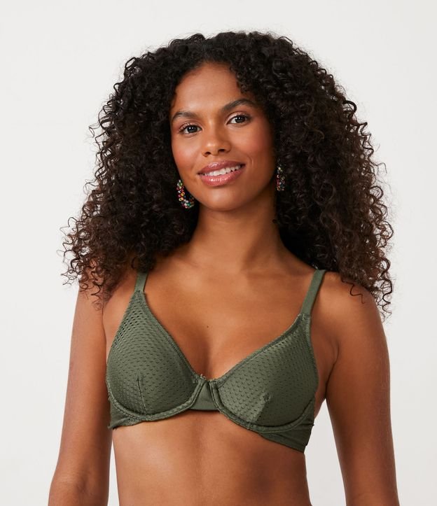 Biquíni Top Meia Taça Alongado em Poliamida com Textura de Mini Escamas