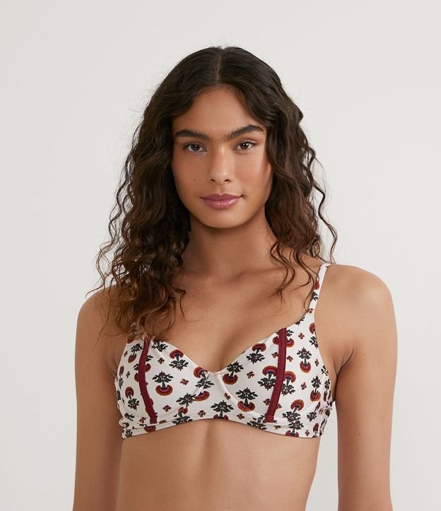 Biquíni Top Meia Taça em Poliamida com Estampa de Florzinhas