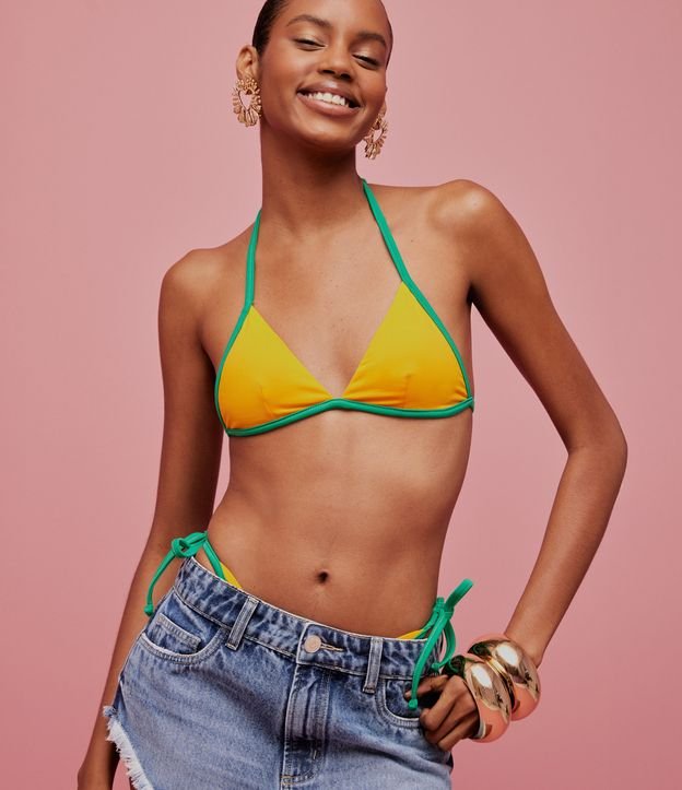 Biquíni Top Triângulo em Microfibra com Viés Contrastante Amarelo