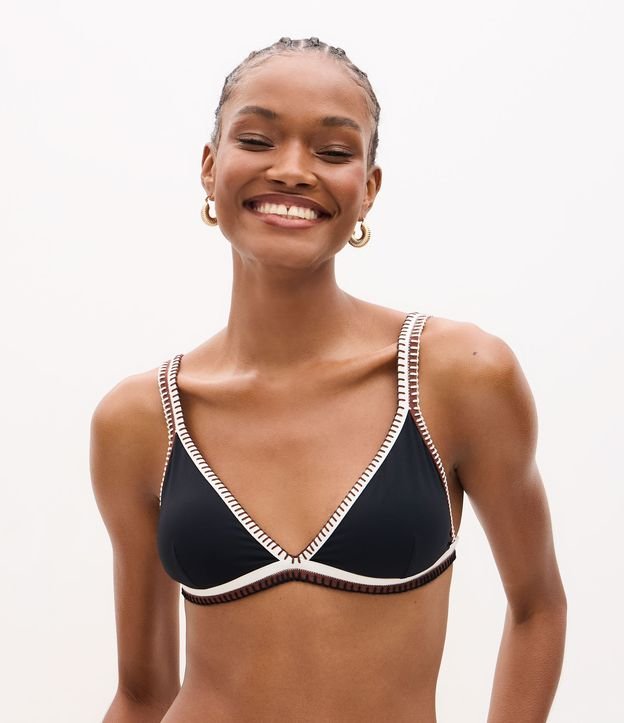 Biquíni Top Triangulo em Poliamida com Detalhamento nas Alças Preto