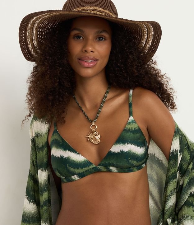 Biquíni Top Triângulo Fixo Em Microfibra Com Estampa Palmeira Real Buriti Verde