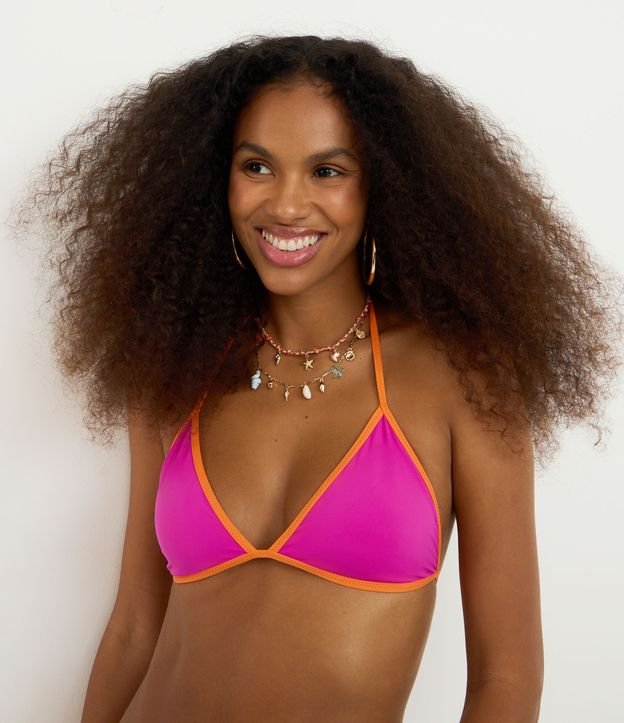 Biquíni Top Triangulo Fixo em Microfibra com Viés Contrastante Rosa