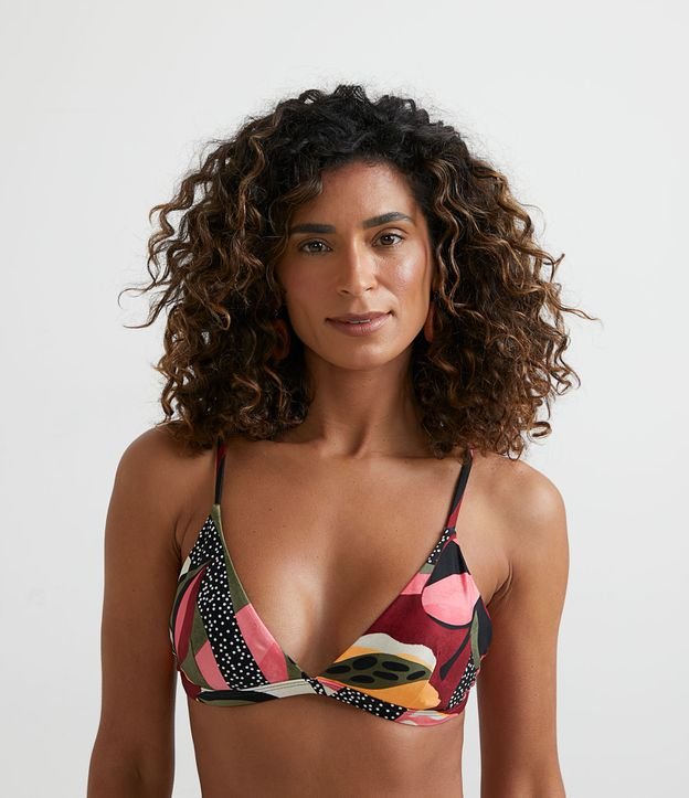 Biquíni Top Triângulo Fixo em Poliamida com Estampa Abstrata