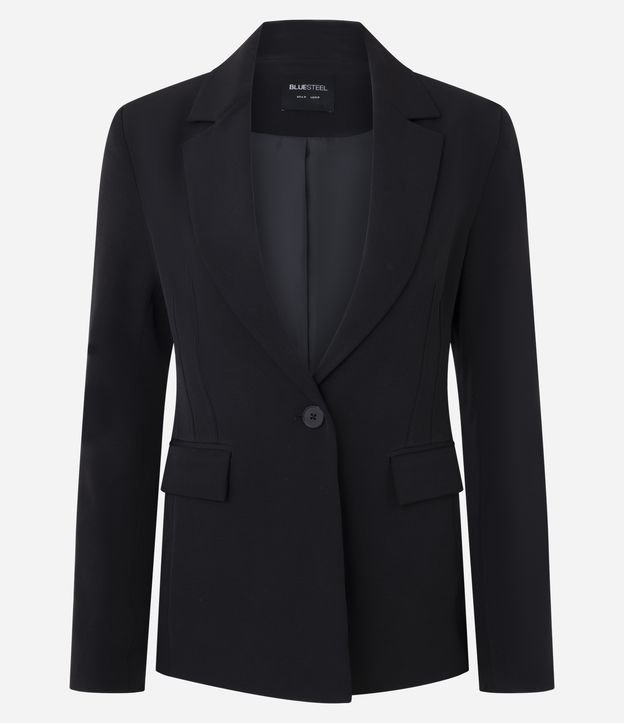 Blazer feminino estruturado confeccionado em poliéster. Possui modelagem alongada, gola lapela, fechamento por um único botão frontal e bolsos para composição.