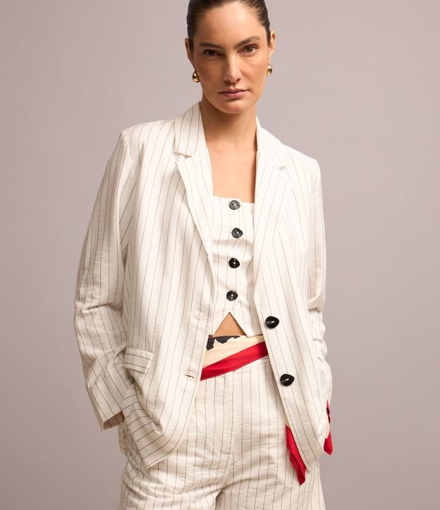 Blazer Alfaiatada em Viscose Listrada com Lapelas
