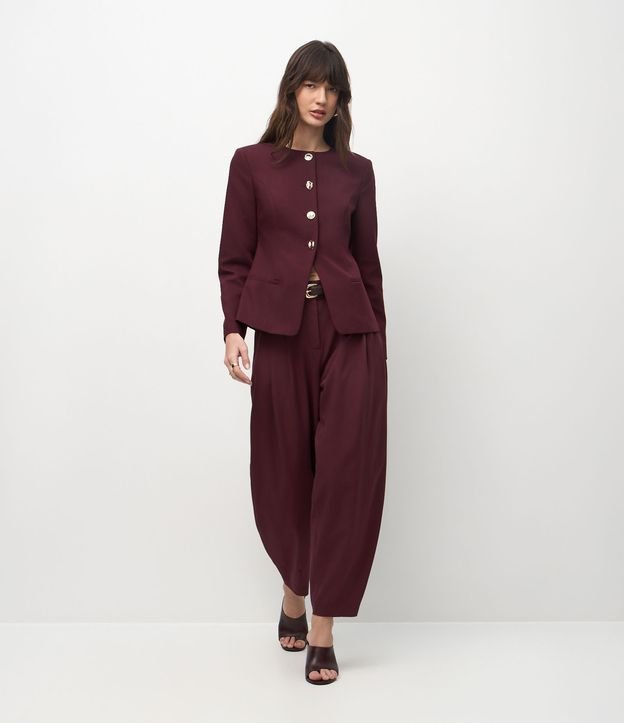 Blazer Alfaiatado com Abotoamento Frontal e Bolsos Vermelho