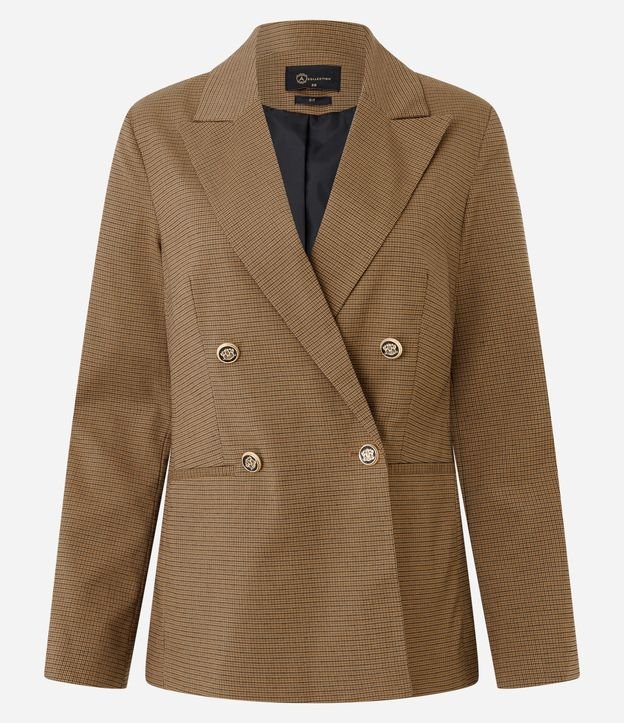 Blazer Alfaiatado com Estampa Mini Xadrez e Forro Interno Marrom