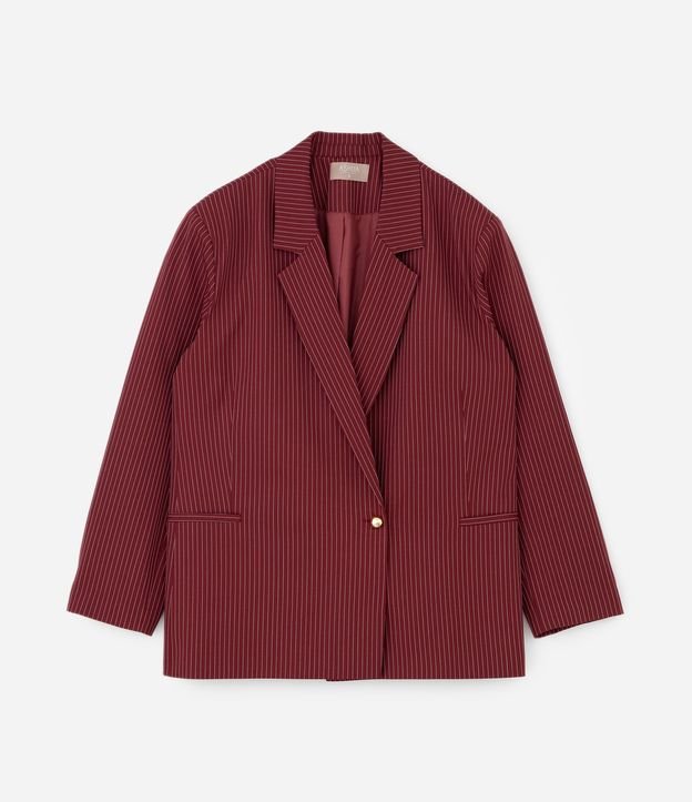 Blazer Alfaiatado com Risca de Giz e Fechamento Transpassado Curve & Plus Size Vermelho