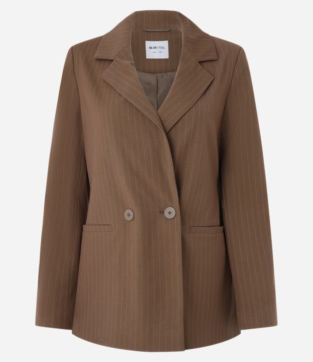 Blazer Alongado em Alfaiataria com Listras Risca de Giz e Botões