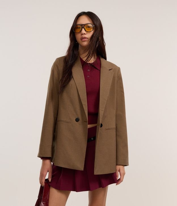 Blazer Alongado em Alfaiataria Xadrez com Botões Marrom