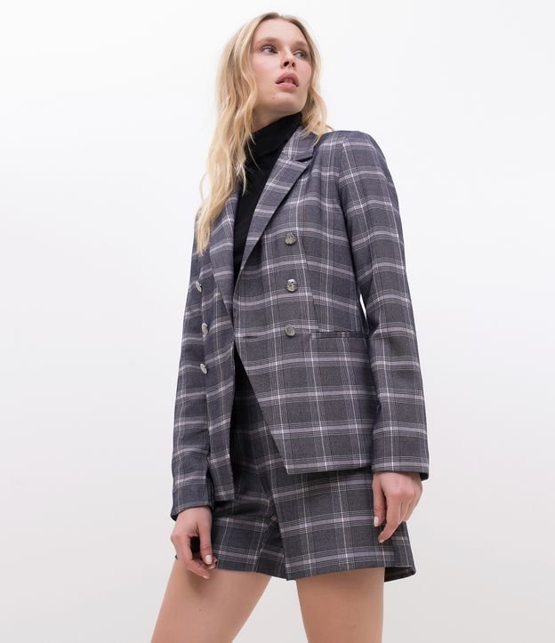 Blazer Alongado Xadrez com Botões