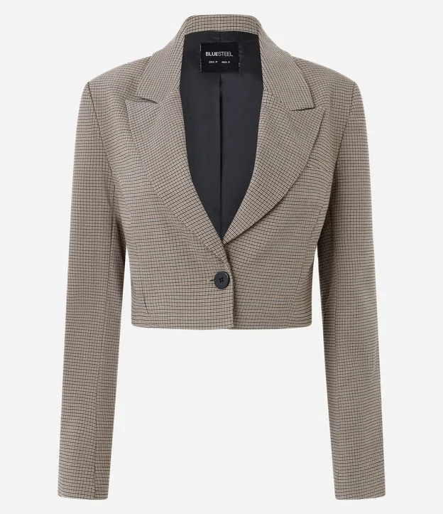 Blazer Cropped Alfaiatado com Estampa Xadrez
