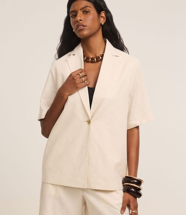 Blazer em Viscolinho com Botão Único e Manga Curta Bege