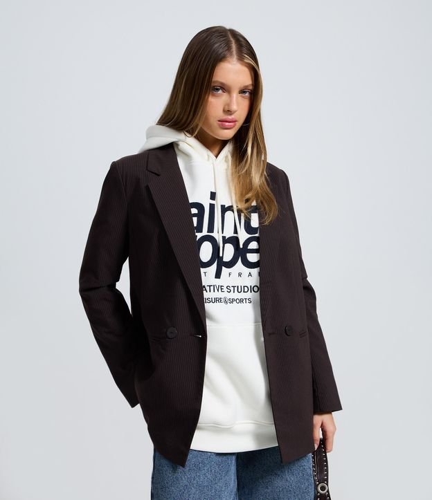Blazer Risca de Giz Alfaiatado Marrom
