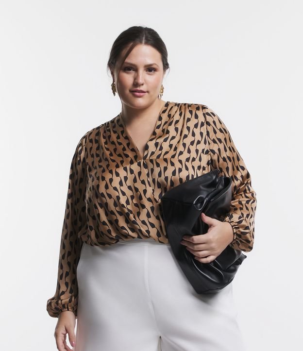Blusa Acetinada com Decote Transpassado e Estampa Geométrica Curve & Plus Size