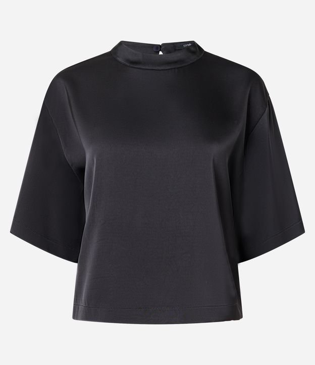 Blusa Acetinada com Golinha Alta e Mangas Curtas Preto