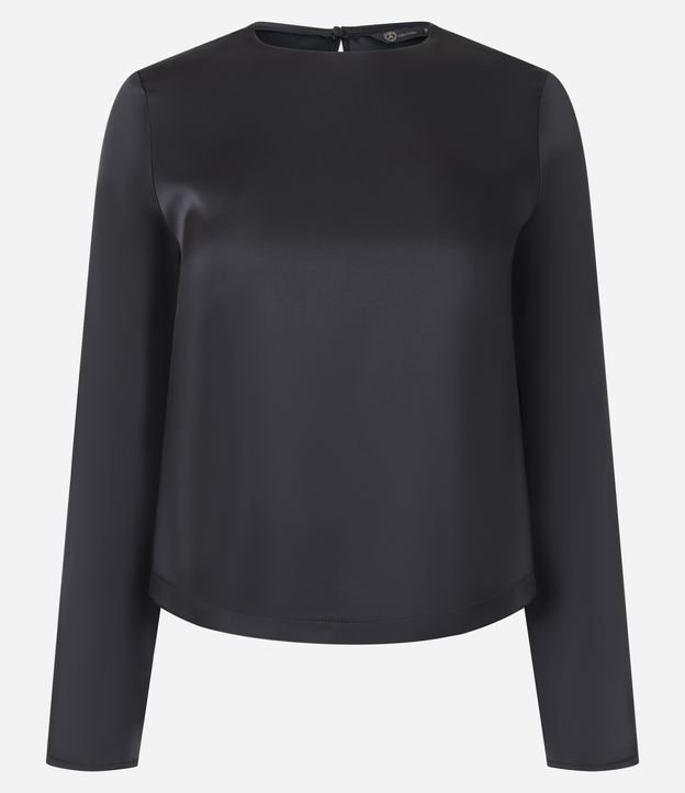 Blusa Acetinada com Manga Longa e Fechamento Posterior Preto