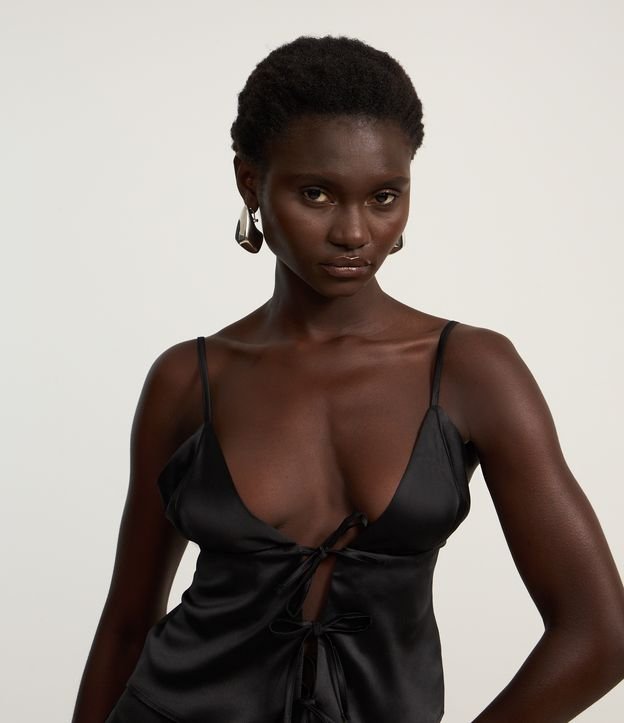 Blusa Acetinada de Alça com Laços Frontais Preto