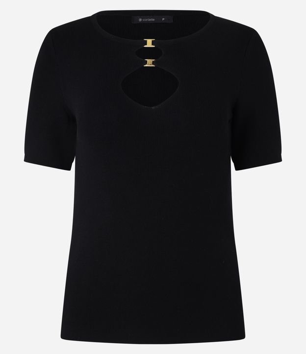 Blusa Ajustada em Tricô com Aberturas Afiveladas Preto