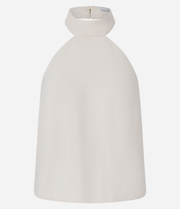 Blusa Alfaiatada Frente Única em Viscose com Gola Alta Bege