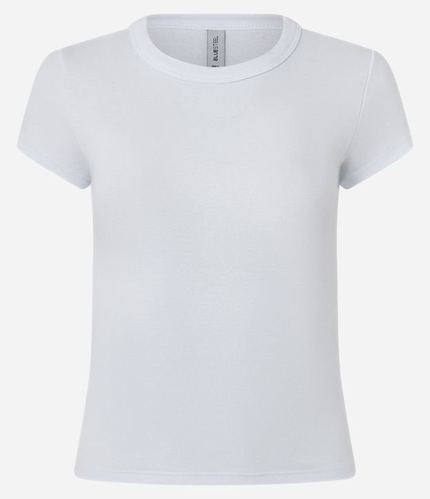 Blusa feminina confeccionada em ribana de algodão certificado bci com boas práticas ambientais, peça com gola redonda e manga curta.