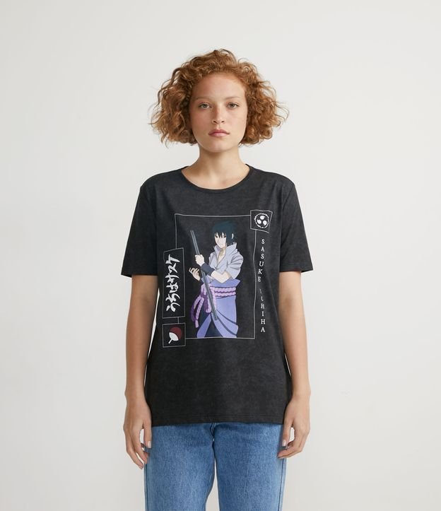 Blusa Alongada em Algodão com Estampa do Sasuke
