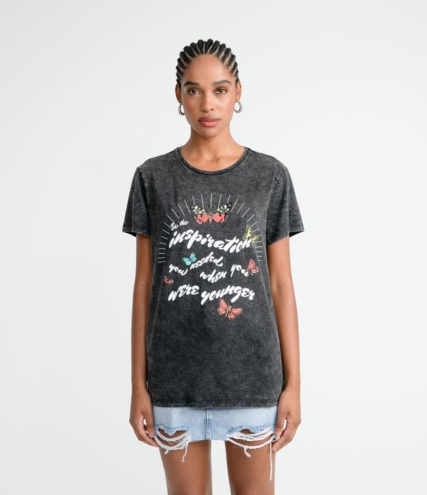Blusa Alongada em Algodão Marmorizado com Estampa de Borboletas