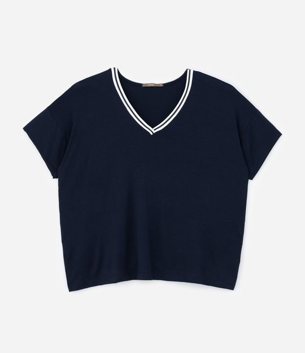 Blusa confeccionada em viscolycra mais sustentável através de boas práticas ambientais, no modelo alongado. Possui gola V, com acabamento retilínea e mangas curtas, ideal para compor looks casuais com estilo Curve & Plus Size.