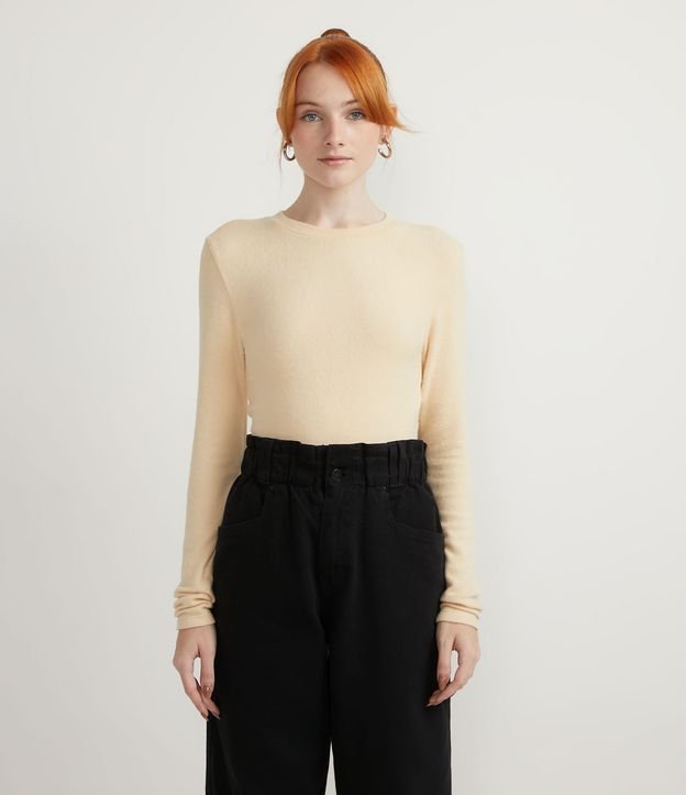 Blusa Alongada em Viscose com Manga Longa sem Estampa