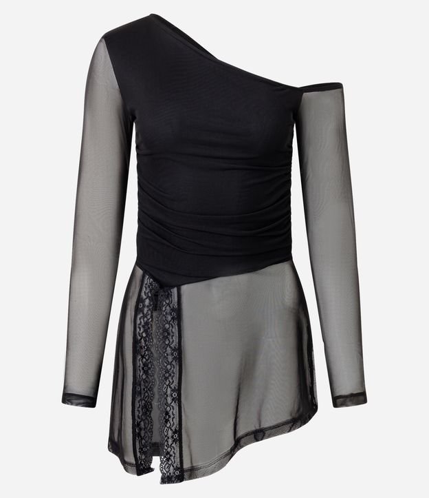 Blusa Assimétrica em Tule com Renda Preto