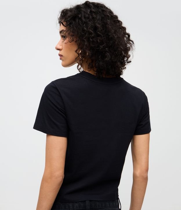 Blusa Baby Look com Bordado de Florzinhas no Decote Preto