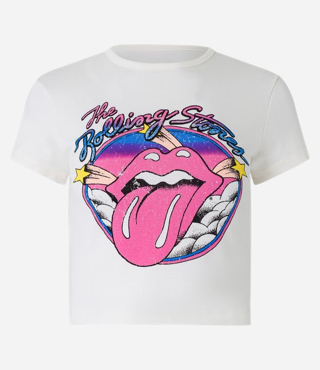 • Blusa Baby Look em Meia Malha com Estampa The Rolling Stones Branco 1
