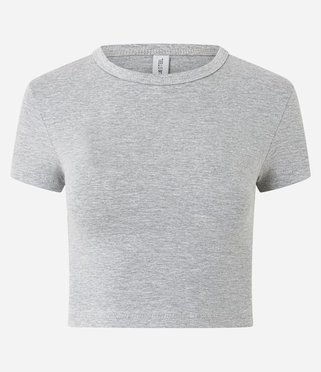 Blusa Baby Tee em Algodão com Cava Deslocada Cinza