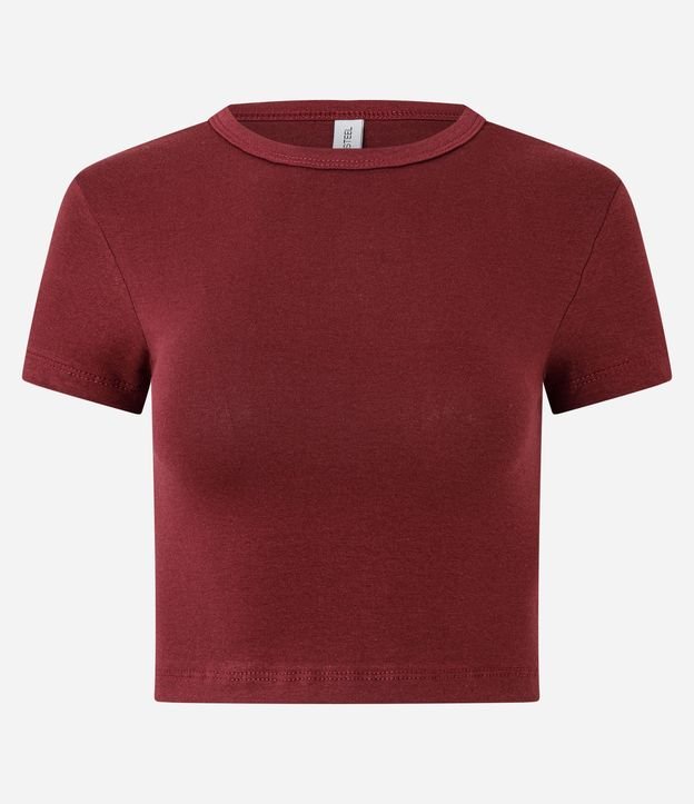 Blusa Baby Tee em Algodão com Cava Deslocada Vermelho Escuro