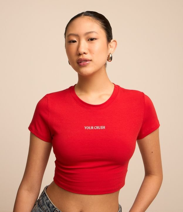 Blusa Baby Tee em Algodão com Lettering Your Crush Vermelho