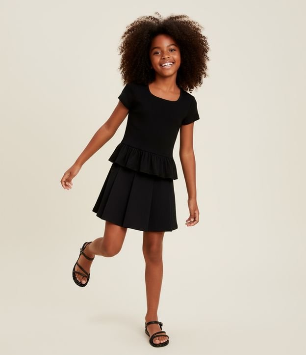 Blusa Balonê Infantil com Babado - Tam 5 a 14 Anos Preto