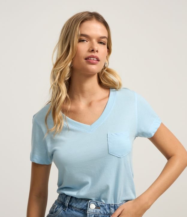 Blusa Básica em Algodão com Bolsinho Frontal Azul Claro