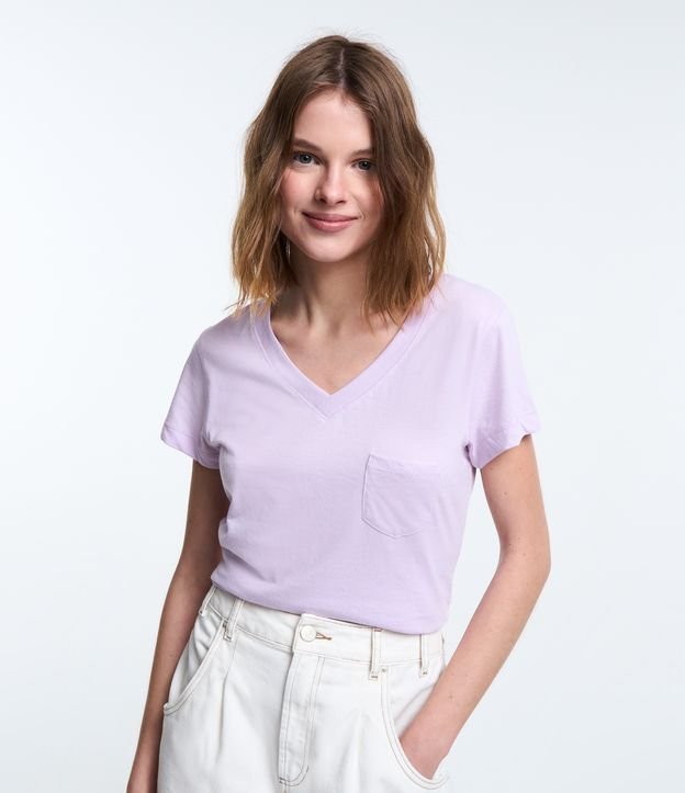 Blusa Básica em Algodão com Bolsinho Frontal Lilás