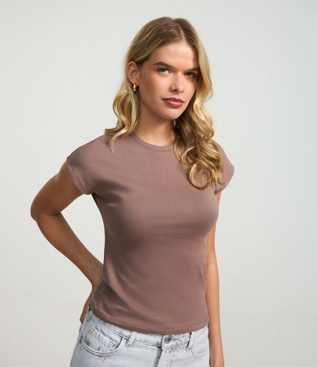 Blusa Básica em Ribana com Ombro Caído Marrom