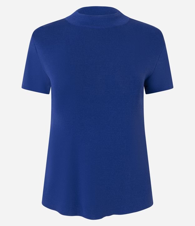 Blusa Básica em Tricô com Golinha Azul