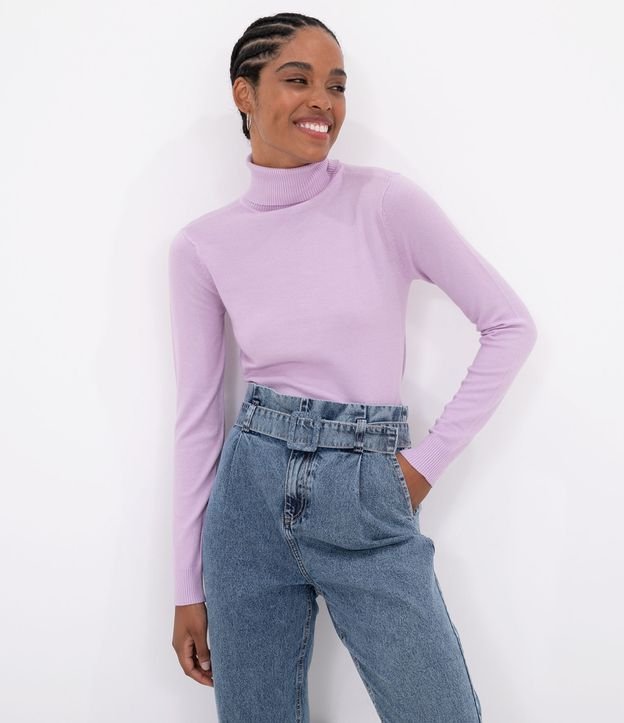 Blusa Alongada em Tricô com Golinha Alta e Fenda