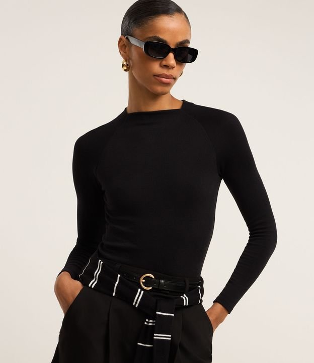 Blusa Básica em Viscose com Gola Alta e Cava Raglan Preto