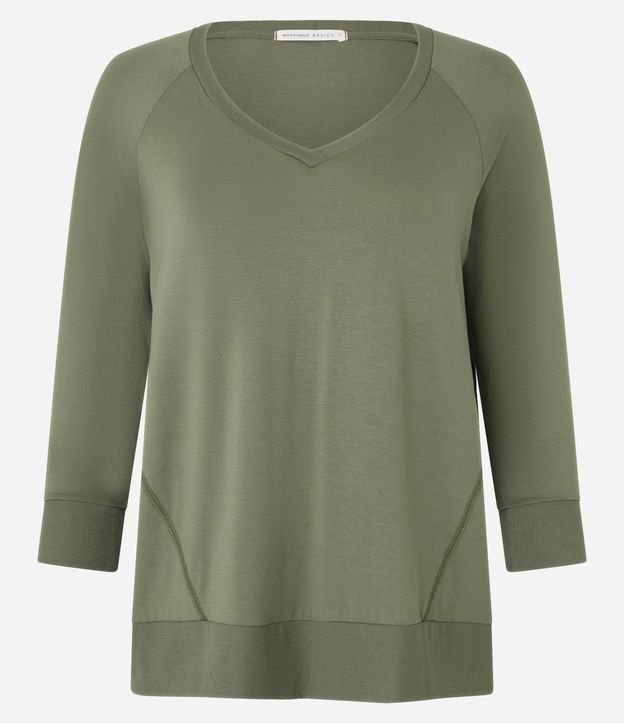 Blusa Básica em Viscose com Manga 3/4 e Decote V Verde