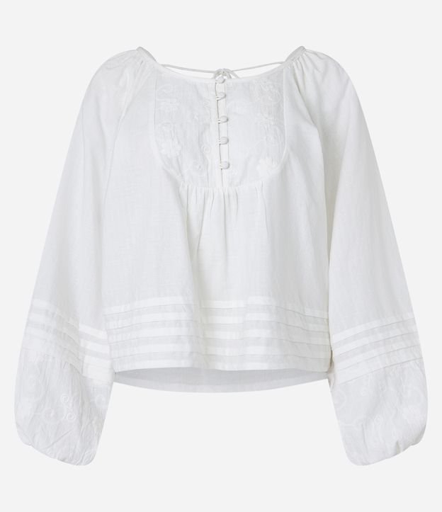 Blusa Bata em Algodão com Botões e Bordado Floral